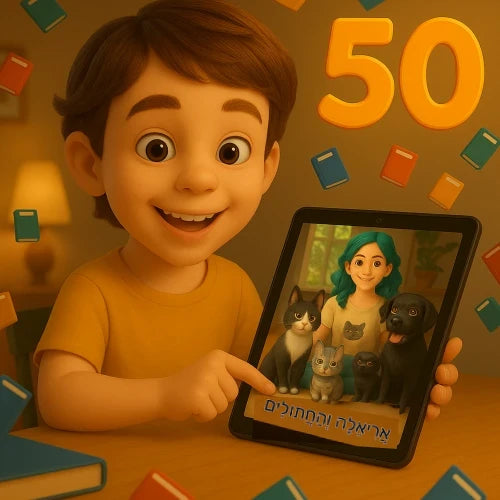 ערכת-על של 50 ספרונים דיגיטליים לתרגול ראשית קריאה בעברית. שמע מובנה בכל ספרון.